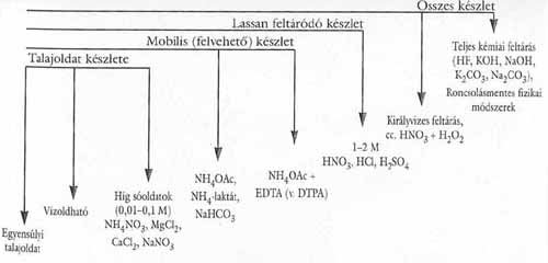 A talajvizsgálatok célja megítélni a talaj szennyezettségi állapotát valamint azt a veszélyt, mely a szennyezőkből származhat (talajvízbe, növénybe jutás stb.). A nehézfémek esetében a szennyezettségi állapot becslésére egyelőre az összes tartalom szolgál. Az összes készletet azonban körülményes meghatározni, a gyakorlatban csak becsüljük az "összes" tartalmat valamilyen kémiai eljárással, leggyakrabban tömény savakkal kezelve a talajokat. Mivel a káros anyagok nagyobb része erősen megkötődhet a talajban (különböző ásványokban), az összes tartalom keveset mond az anyag aktuális felvehetőségéről, mobilitásáról. Élettani, ökológiai és veszélyeztetési szempontból az oldhatóbb frakciók jelentősége fontos. Elemzésükkel bepillantást nyerhetünk a károsanyag talajbani kötésformáiba és ezzel becsülhető a jövőbeni felvehetőségük is. A talajok terhelésének megítélését, az ásványi szennyezők frakcionálásának elvi sémáját az 1. ábra szemlélteti.